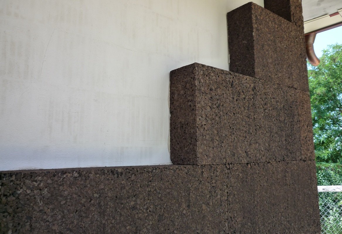 Image: Cork insulation panels installed in sustainable building project.