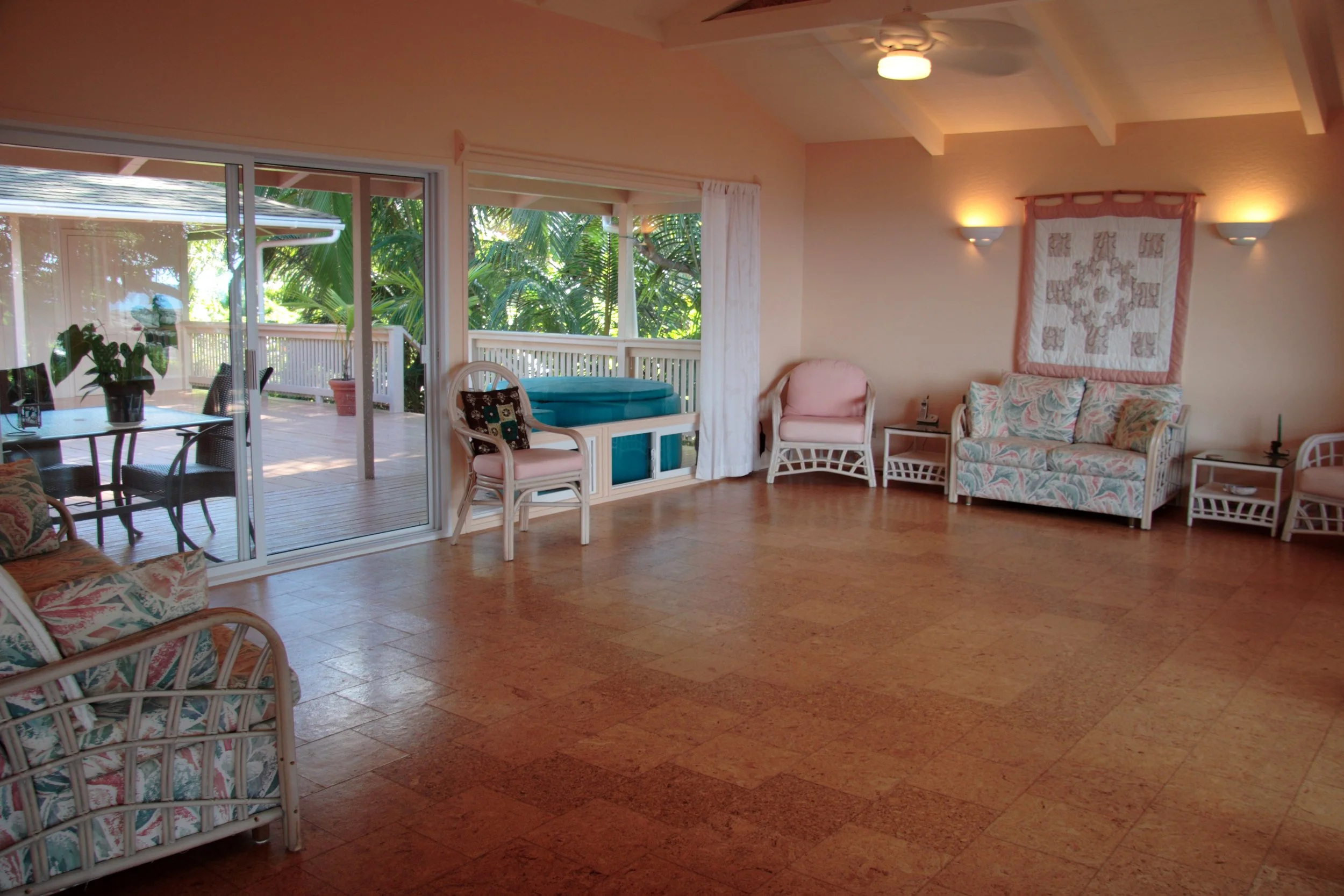 Darker cork tile border gives some depth to this room